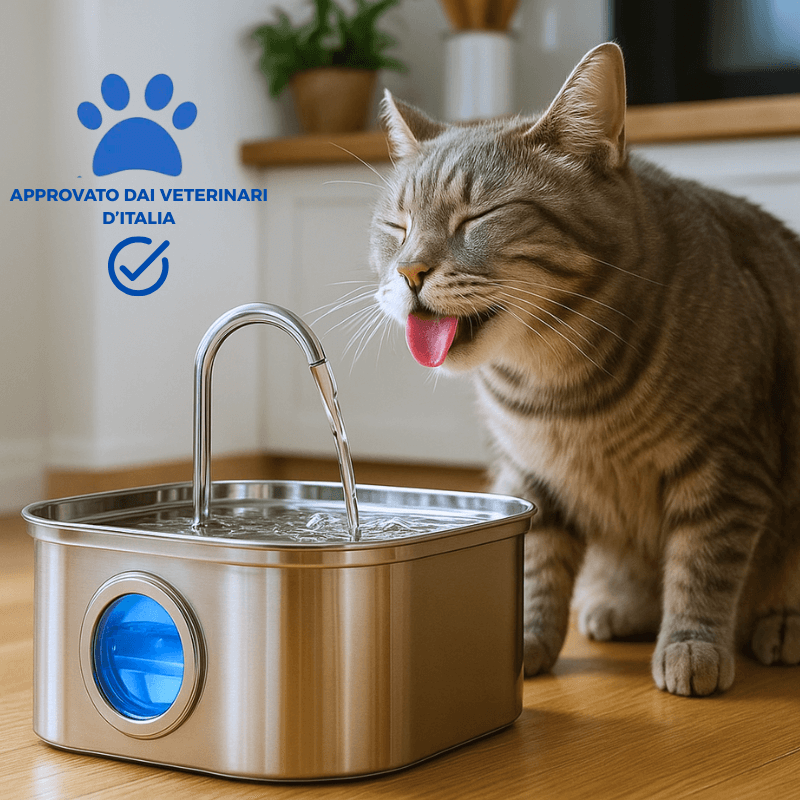 PurrFlow è la prima fontanella d’acqua progettata in Italia per unire design elegante e benessere del tuo pet. Realizzata in acciaio inox 304 privo di BPA, offre acqua fresca e pura 24/7, stimolando il tuo animale a bere di più. Silenziosa, resistente e coperta da 1 anno di garanzia, è la scelta n°1 per la salute e la felicità del tuo amico a 4 zampe.